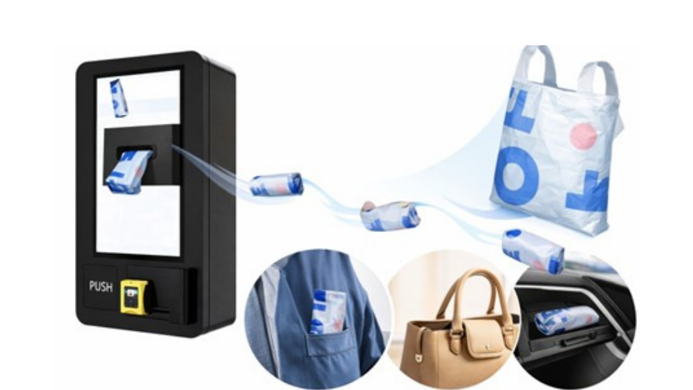 Bags are folded into a compact, pocket-sized format and dispensed from a secure, UKCA-compliant machine. At the point of purchase, customers are shown and encouraged how to refold the bag after use, making it easy to store in a pocket, handbag, or car glove compartment. This simple behaviour change helps ensure the bag is kept with the customer and reused repeatedly.